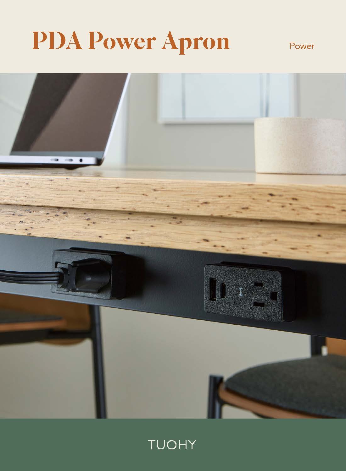 The PDA Power Apron is a simple yet elegant means for distributing power and data to a single or multiple users on almost any table.