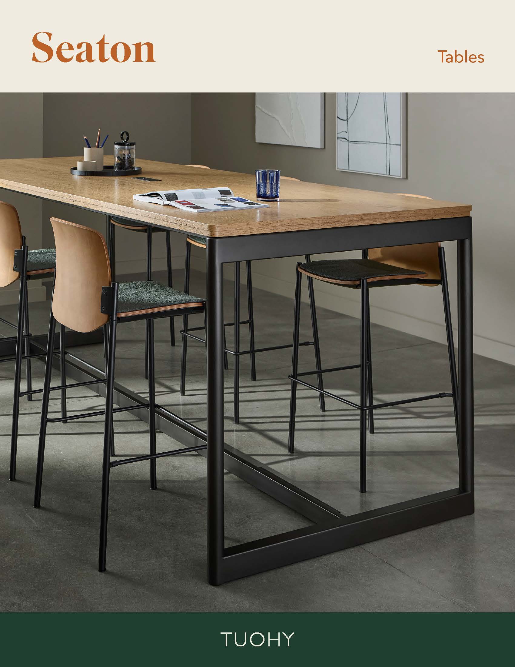 The Seaton Table Collection includes a wide variety of tables including occasional, seated, counter and bar height offerings. Rectangular and round tops are available in a range of materials and may be combined for a variety of edge options.