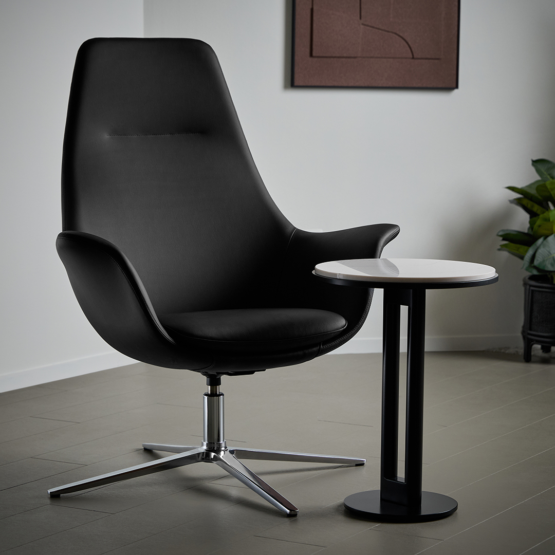 The Stratford Lounge Collection offers the perfect balance of softness and resilient support. The chair’s design embraces the natural curves of your spine, encouraging a relaxed posture without feeling stiff. A slightly reclined back, ample seat depth, and a high-back version further enhance ergonomic support.